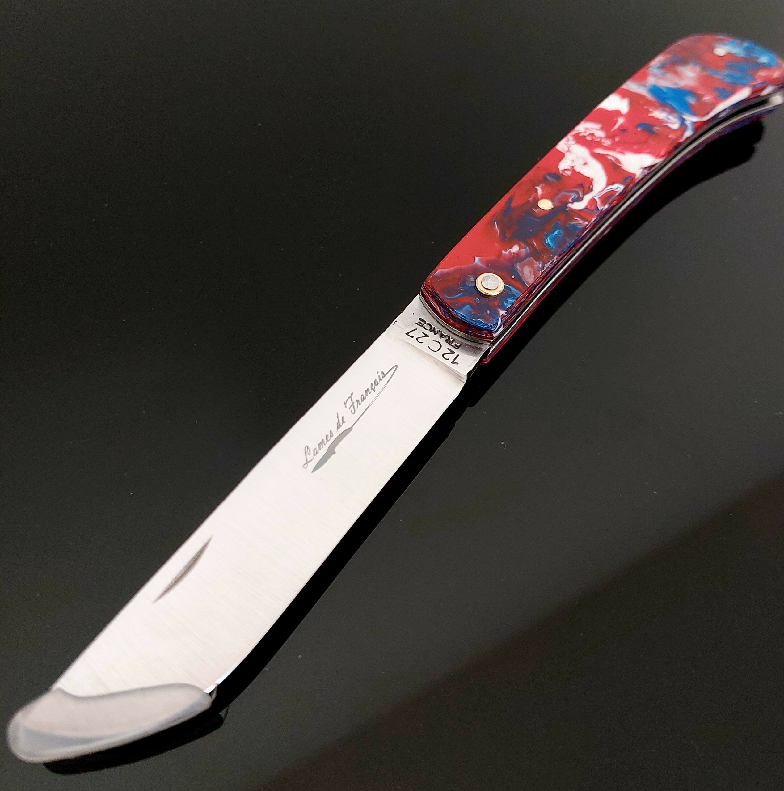 Couteau pliant élégant et pratique, idéal pour un usage quotidien. en acier inoxydable 12C27, il allie robustesse, tranchant durable et design raffiné. Le manche en bbr et la gravure au laser en font une pièce unique.