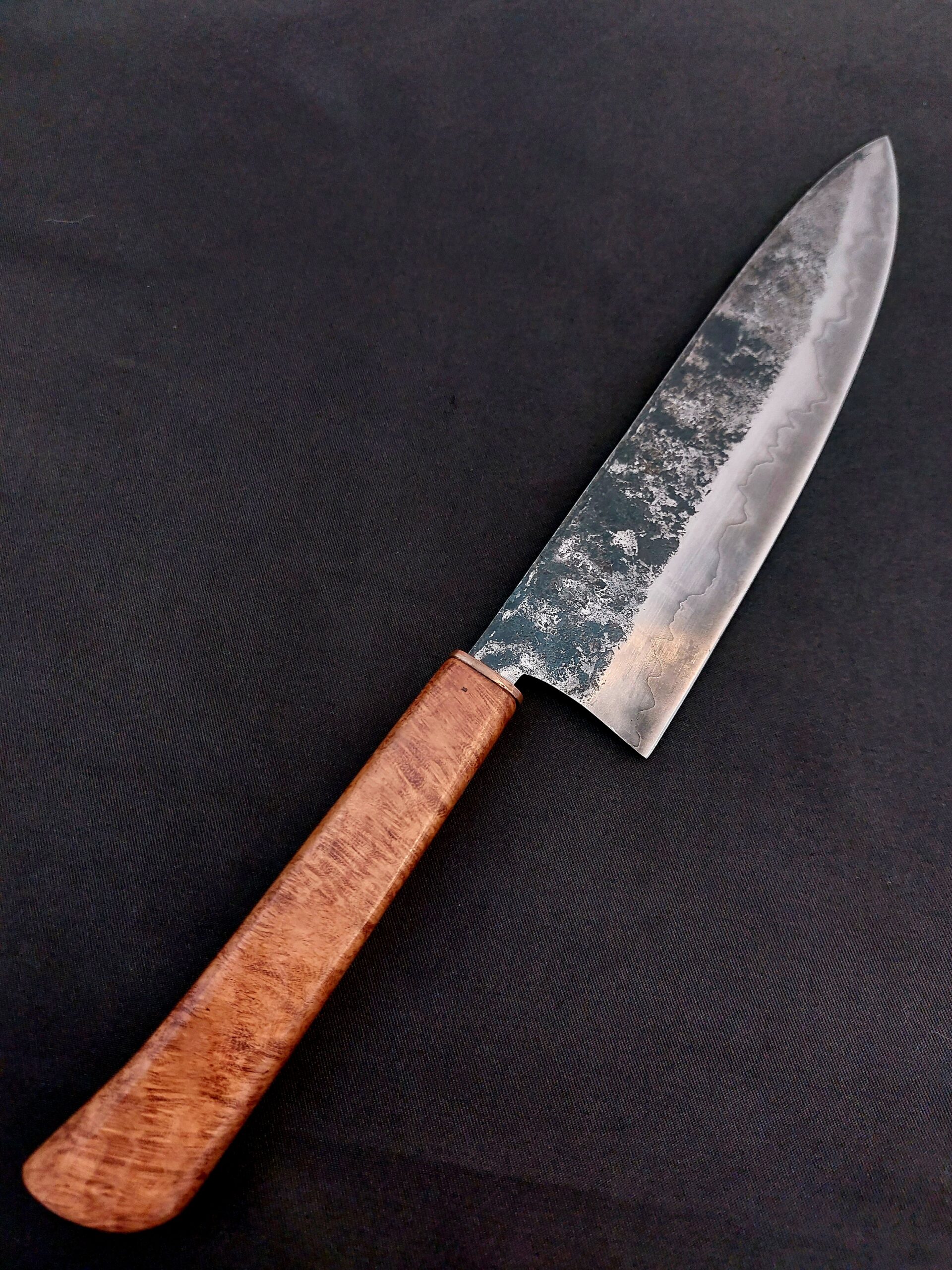 le Tori, notre dernier couteau de cuisine! Inspiré par la précision et l’élégance des art martiaux japonais, le Tori signifie « celui qui exécute » en japonais- c’est une extension de votre volonté en cuisine. Avec une lame de 21cm forgée en sanmai combinant acier carbone et inox pour une durabilité sans pareil.